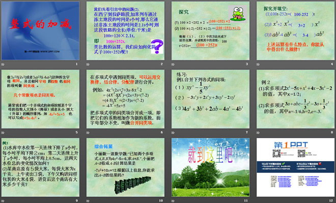 关键词:整式的加减课件,新人教版七年级上册数学PPT课件,七年级数学幻灯片课件下载,整式的加减PPT课件下载,.ppt格式