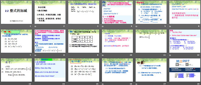 关键词:整式的加减课件,新人教版七年级上册数学PPT课件,七年级数学幻灯片课件下载,整式的加减PPT课件下载,.ppt格式