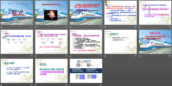 关键词:整式的加减课件,整式课件,新人教版七年级上册数学PPT课件,七年级数学幻灯片课件下载,整式的加减PPT课件下载,整式PPT课件下载,.ppt格式