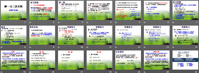 关键词:一元二次方程课件,解一元二次方程课件,新人教版九年级上册数学PPT课件,九年级数学幻灯片课件下载,一元二次方程PPT课件下载,解一元二次方程PPT课件下载,.ppt格式