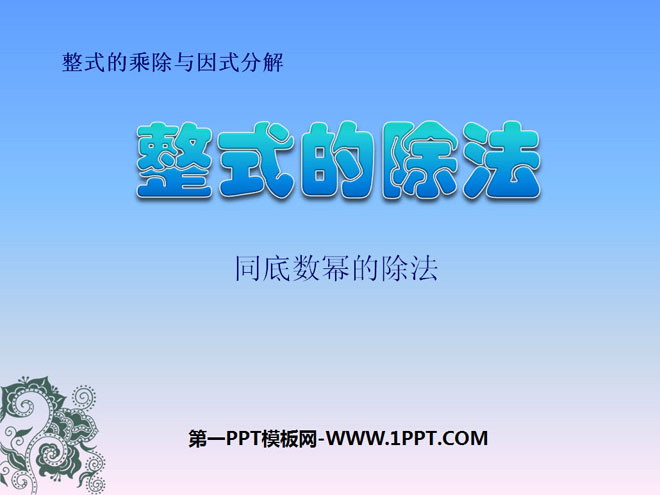 关键词:整式的乘除与因式分解课件,整式的除法课件,新人教版八年级上册数学PPT课件,八年级数学幻灯片课件下载,整式的乘除与因式分解PPT课件下载,整式的除法PPT课件下载,.ppt格式