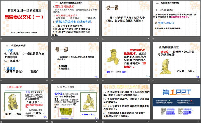 关键词:统一国家的建立教学课件,昌盛的秦汉文化教学课件,人教版七年级上册历史PPT课件下载,七年级历史幻灯片课件下载,统一国家的建立PPT课件下载,昌盛的秦汉文化PPT课件下载,.PPT格式;