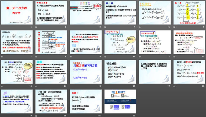 关键词:一元二次方程课件,解一元二次方程课件,新人教版九年级上册数学PPT课件,九年级数学幻灯片课件下载,一元二次方程PPT课件下载,解一元二次方程PPT课件下载,.ppt格式