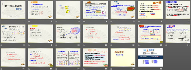 关键词:一元二次方程课件,解一元二次方程课件,新人教版九年级上册数学PPT课件,九年级数学幻灯片课件下载,一元二次方程PPT课件下载,解一元二次方程PPT课件下载,.ppt格式