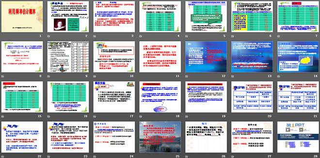 关键词:概率初步课件,利用频率估计概率课件,新人教版九年级上册数学PPT课件,九年级数学幻灯片课件下载,概率初步PPT课件下载,利用频率估计概率PPT课件下载,.ppt格式