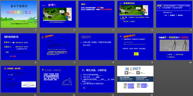 关键词:基本平面图形课件,比较线段的长短课件,北师大版七年级上册数学PPT课件,七年级数学幻灯片课件下载,基本平面图形PPT课件下载,比较线段的长短PPT课件下载,.ppt格式