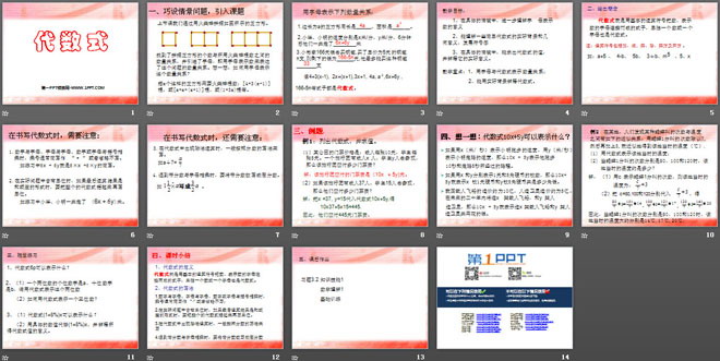 关键词:整式及其加减课件,代数式课件,北师大版七年级上册数学PPT课件,七年级数学幻灯片课件下载,整式及其加减PPT课件下载,代数式PPT课件下载,.ppt格式