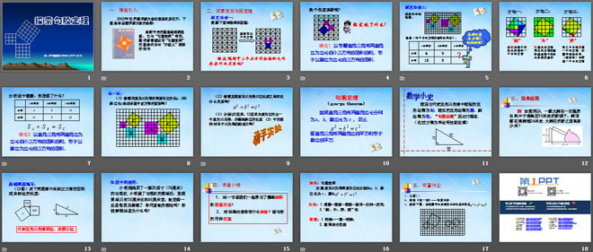 关键词:勾股定理课件,探索勾股定理课件,北师大版八年级上册数学PPT课件,八年级数学幻灯片课件下载,勾股定理PPT课件下载,探索勾股定理PPT课件下载,.ppt格式