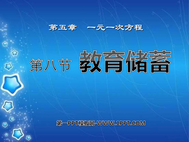 关键词:一元一次方程课件,教育储蓄课件,北师大版七年级上册数学PPT课件,七年级数学幻灯片课件下载,一元一次方程PPT课件下载,教育储蓄PPT课件下载,.ppt格式
