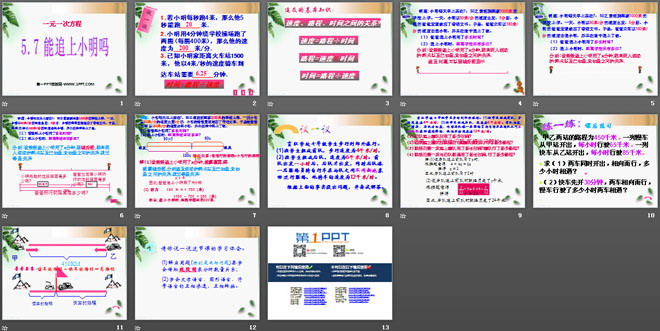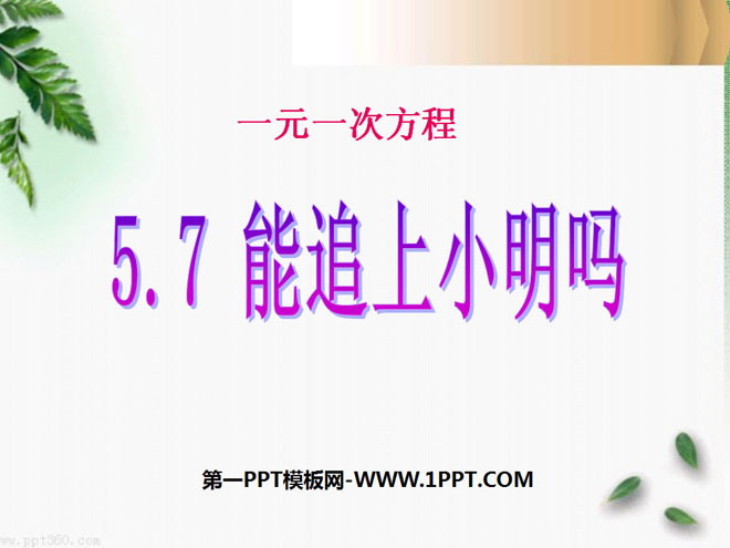 关键词:一元一次方程课件,能追上小明吗课件,北师大版七年级上册数学PPT课件,七年级数学幻灯片课件下载,一元一次方程PPT课件下载,能追上小明吗PPT课件下载,.ppt格式