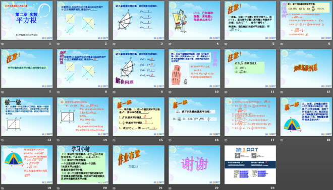 关键词:实数课件,平方根课件,北师大版八年级上册数学PPT课件,八年级数学幻灯片课件下载,实数PPT课件下载,平方根PPT课件下载,.ppt格式