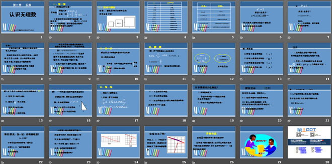 关键词:实数课件,认识无理数课件,北师大版八年级上册数学PPT课件,八年级数学幻灯片课件下载,实数PPT课件下载,认识无理数PPT课件下载,.ppt格式