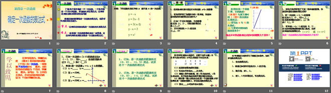 关键词:一次函数课件,确定一次函数的表达式课件,北师大版八年级上册数学PPT课件,八年级数学幻灯片课件下载,一次函数PPT课件下载,确定一次函数的表达式PPT课件下载,.ppt格式