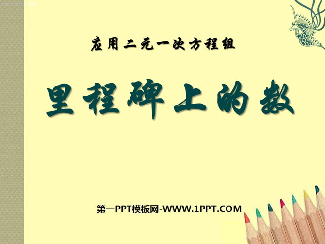 关键词:二元一次方程组课件,应用二元一次方程组里程碑上的数课件,北师大版八年级上册数学PPT课件,八年级数学幻灯片课件下载,二元一次方程组PPT课件下载,应用二元一次方程组里程碑上的数PPT课件下载,.ppt格式