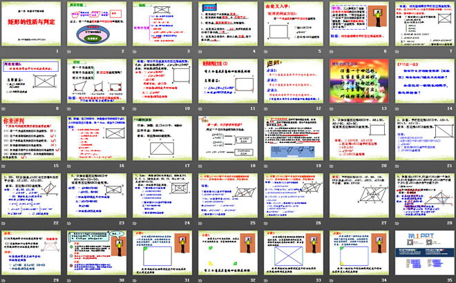 关键词:特殊平行四边形教学课件,矩形的性质与判定教学课件,北师大版九年级上册数学PPT课件,九年级数学幻灯片课件下载,特殊平行四边形PPT课件下载,矩形的性质与判定PPT课件下载,.ppt格式