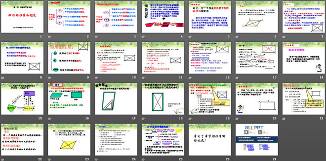关键词:特殊平行四边形教学课件,矩形的性质与判定教学课件,北师大版九年级上册数学PPT课件,九年级数学幻灯片课件下载,特殊平行四边形PPT课件下载,矩形的性质与判定PPT课件下载,.ppt格式