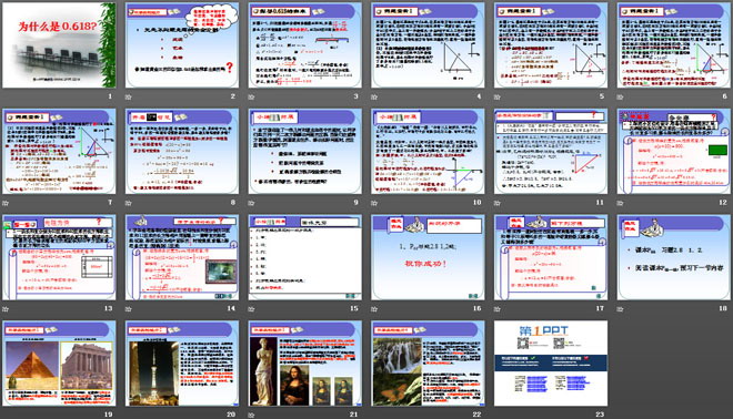 关键词:一元二次方程教学课件,为什么是0.618教学课件,北师大版九年级上册数学PPT课件,九年级数学幻灯片课件下载,一元二次方程PPT课件下载,为什么是0.618PPT课件下载,.ppt格式