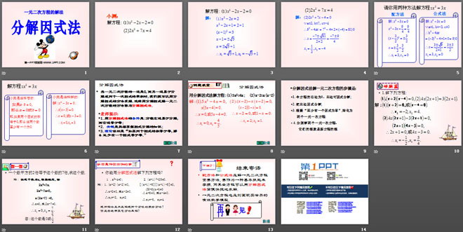 关键词:一元二次方程教学课件,分解因式法教学课件,北师大版九年级上册数学PPT课件,九年级数学幻灯片课件下载,一元二次方程PPT课件下载,分解因式法PPT课件下载,.ppt格式