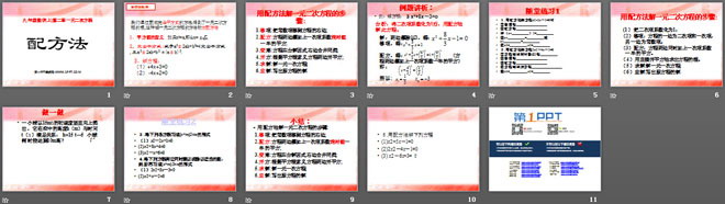 关键词:一元二次方程课件,配方法教学课件,北师大版九年级上册数学PPT课件,九年级数学幻灯片课件下载,一元二次方程PPT课件下载,配方法PPT课件下载,.ppt格式