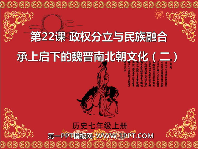关键词:政权分立与民族融合教学课件,承上启下的魏晋南北朝文化教学课件,人教版七年级上册历史PPT课件下载,七年级历史幻灯片课件下载,政权分立与民族融合PPT课件下载,承上启下的魏晋南北朝文化PPT课件下载,.PPT格式;