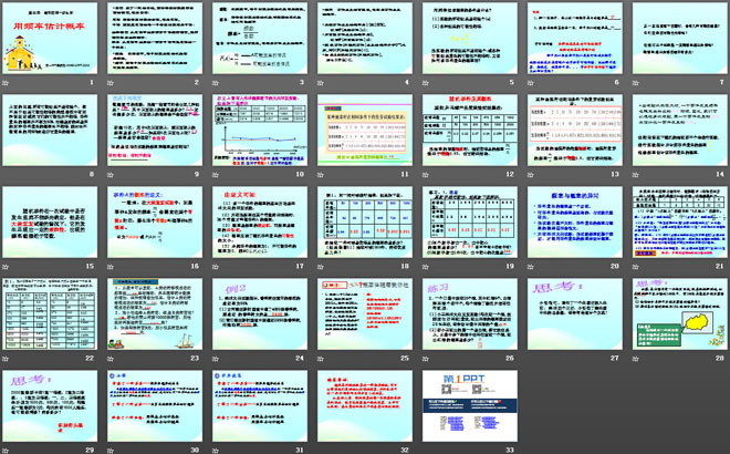 关键词:概率的进一步认识教学课件,用频率估计概率教学课件,北师大版九年级上册数学PPT课件,九年级数学幻灯片课件下载,概率的进一步认识PPT课件下载,用频率估计概率PPT课件下载,.ppt格式