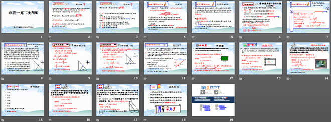 关键词:一元二次方程教学课件,应用一元二次方程教学课件,北师大版九年级上册数学PPT课件,九年级数学幻灯片课件下载,一元二次方程PPT课件下载,应用一元二次方程PPT课件下载,.ppt格式
