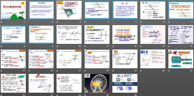 关键词:相交线与平行线教学课件,平行线的判定教学课件,新人教版七年级下册数学PPT课件,七年级数学幻灯片课件下载,相交线与平行线PPT课件下载,平行线的判定PPT课件下载,.ppt格式