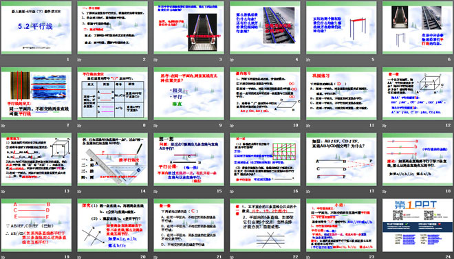关键词:相交线与平行线教学课件,平行线教学课件,新人教版七年级下册数学PPT课件,七年级数学幻灯片课件下载,相交线与平行线PPT课件下载,平行线PPT课件下载,.ppt格式