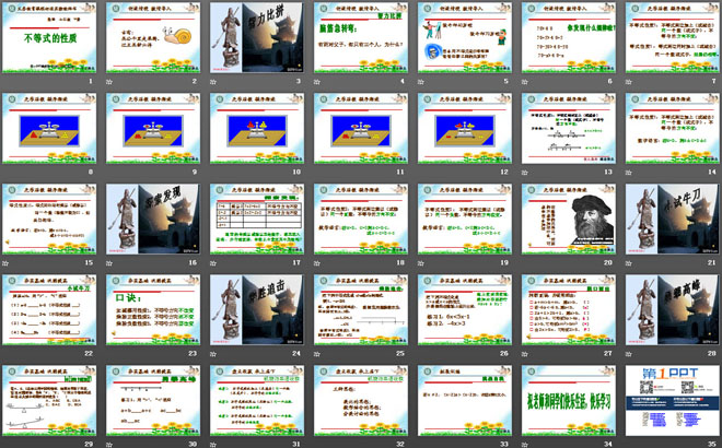 关键词:不等式与不等式组教学课件,不等式的性质教学课件,新人教版七年级下册数学PPT课件,七年级数学幻灯片课件下载,不等式与不等式组PPT课件下载,不等式的性质PPT课件下载,.ppt格式