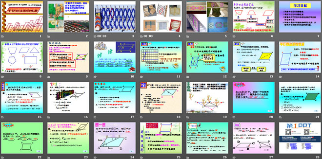 关键词:四边形教学课件,平行四边形的性质教学课件,新人教版八年级下册数学PPT课件,八年级数学幻灯片课件下载,四边形PPT课件下载,平行四边形的性质PPT课件下载,.ppt格式