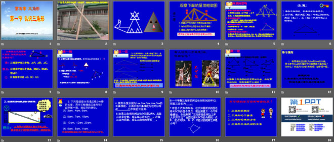 关键词:认识三角形教学课件,三角形教学课件,北师大版七年级下册数学PPT课件,七年级数学幻灯片课件下载,认识三角形PPT课件下载,三角形PPT课件下载,.ppt格式