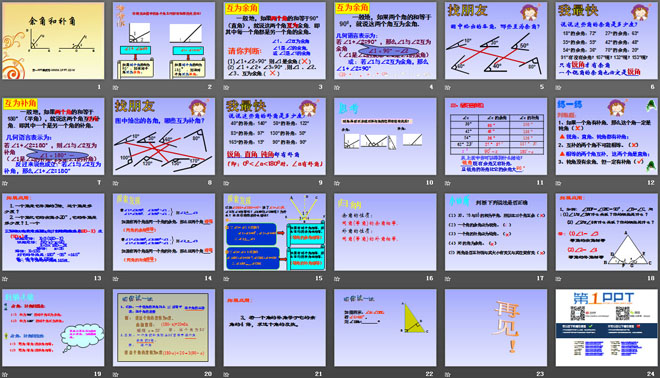 关键词:平行线与相交线教学课件,余角与补角教学课件,北师大版七年级下册数学PPT课件,七年级数学幻灯片课件下载,平行线与相交线PPT课件下载,余角与补角PPT课件下载,.ppt格式
