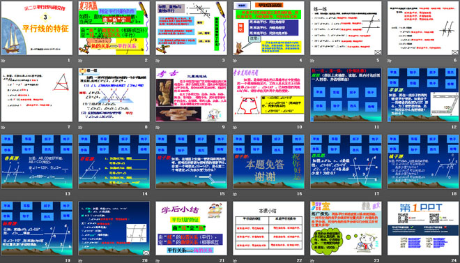 关键词:平行线与相交线教学课件,平行线的特征教学课件,北师大版七年级下册数学PPT课件,七年级数学幻灯片课件下载,平行线与相交线PPT课件下载,平行线的特征PPT课件下载,.ppt格式