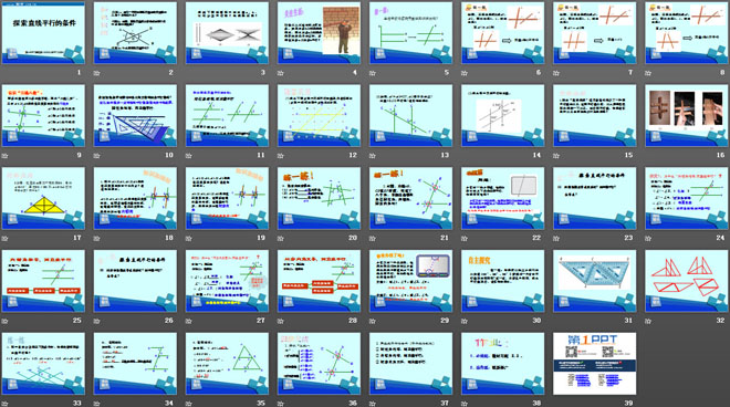 关键词:平行线与相交线教学课件,探索直线平行的条件教学课件,北师大版七年级下册数学PPT课件,七年级数学幻灯片课件下载,平行线与相交线PPT课件下载,探索直线平行的条件PPT课件下载,.ppt格式