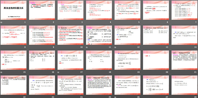 1.两条直线有且只有一个公共点,则两直线相交;没有公共点,则两直线平行;有无数个公共点,则两直线重合.