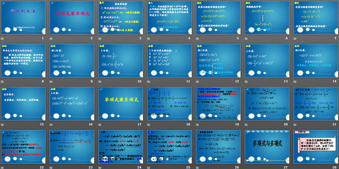 关键词:整式的运算教学课件,整式的乘法教学课件,北师大版七年级下册数学PPT课件,七年级数学幻灯片课件下载,整式的运算PPT课件下载,整式的乘法PPT课件下载,.ppt格式