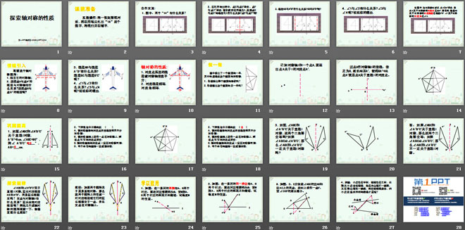 关键词:轴对称教学课件,探索轴对称的性质教学课件,北师大版七年级下册数学PPT课件,七年级数学幻灯片课件下载,轴对称PPT课件下载,探索轴对称的性质PPT课件下载,.ppt格式