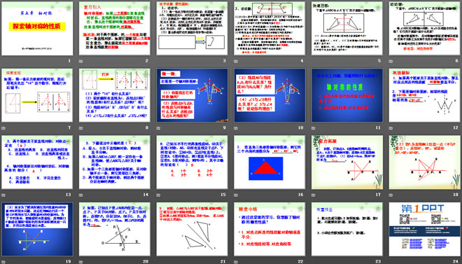 关键词:轴对称教学课件,探索轴对称的性质教学课件,北师大版七年级下册数学PPT课件,七年级数学幻灯片课件下载,轴对称PPT课件下载,探索轴对称的性质PPT课件下载,.ppt格式