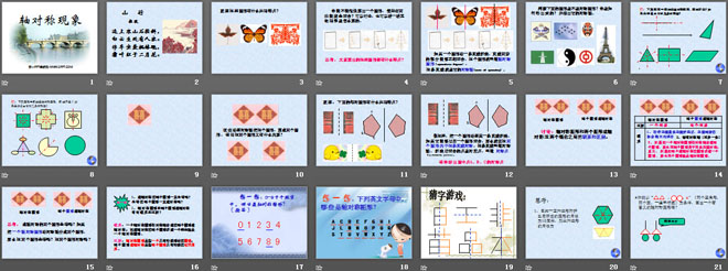关键词:轴对称教学课件,轴对称现象教学课件,北师大版七年级下册数学PPT课件,七年级数学幻灯片课件下载,轴对称PPT课件下载,轴对称现象PPT课件下载,.ppt格式