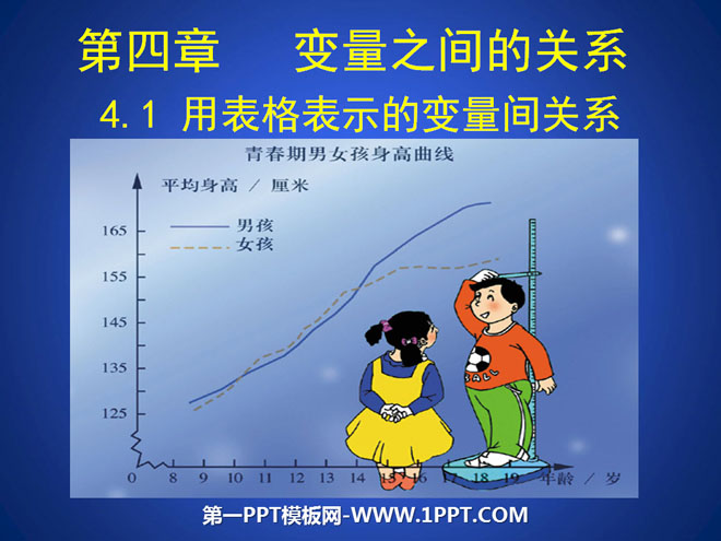 关键词:变量之间的关系教学课件,用表格表示的变量间关系教学课件,北师大版七年级下册数学PPT课件,七年级数学幻灯片课件下载,变量之间的关系PPT课件下载,用表格表示的变量间关系PPT课件下载,.ppt格式