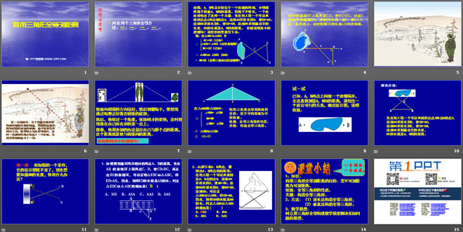 关键词:三角形教学课件,利用三角形全等测距离教学课件,北师大版七年级下册数学PPT课件,七年级数学幻灯片课件下载,三角形PPT课件下载,利用三角形全等测距离PPT课件下载,.ppt格式