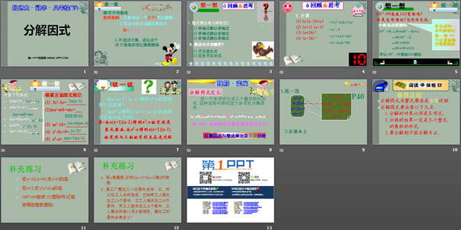 关键词:分解因式教学课件,北师大版八年级下册数学PPT课件,八年级数学幻灯片课件下载,分解因式PPT课件下载,.ppt格式