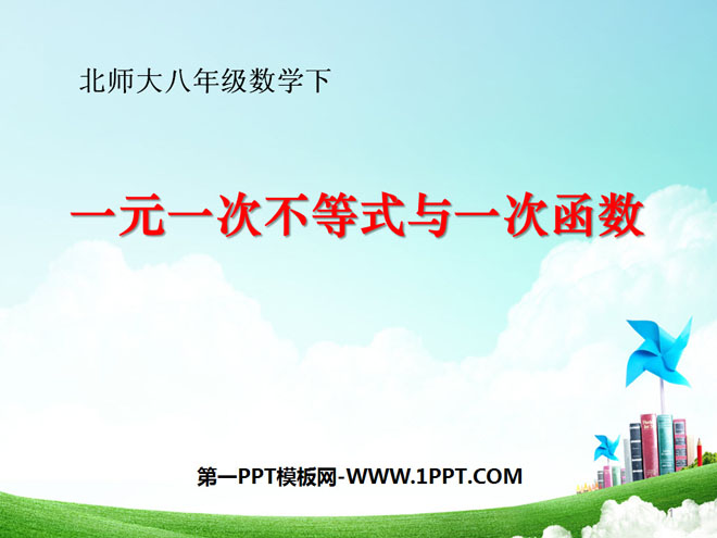 关键词:一元一次不等式与一次函数教学课件,一元一次不等式和一元一次不等式组教学课件,北师大版八年级下册数学PPT课件,八年级数学幻灯片课件下载,一元一次不等式与一次函数PPT课件下载,一元一次不等式和一元一次不等式组PPT课件下载,.ppt格式