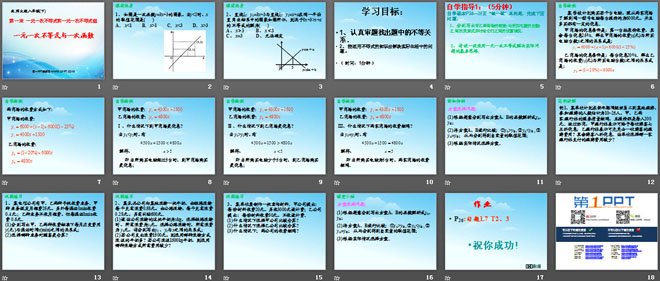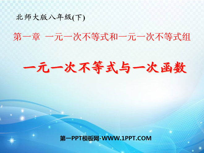 关键词:一元一次不等式与一次函数教学课件,一元一次不等式和一元一次不等式组教学课件,北师大版八年级下册数学PPT课件,八年级数学幻灯片课件下载,一元一次不等式与一次函数PPT课件下载,一元一次不等式和一元一次不等式组PPT课件下载,.ppt格式