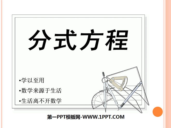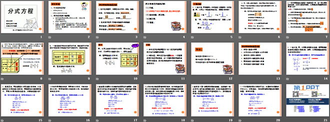 关键词:分式教学课件,分式方程教学课件,北师大版八年级下册数学PPT课件,八年级数学幻灯片课件下载,分式PPT课件下载,分式方程PPT课件下载,.ppt格式