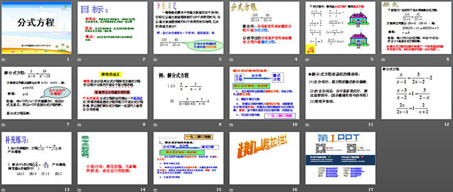 关键词:分式教学课件,分式方程教学课件,北师大版八年级下册数学PPT课件,八年级数学幻灯片课件下载,分式PPT课件下载,分式方程PPT课件下载,.ppt格式