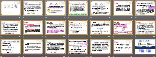 关键词:分式教学课件,分式方程教学课件,北师大版八年级下册数学PPT课件,八年级数学幻灯片课件下载,分式PPT课件下载,分式方程PPT课件下载,.ppt格式