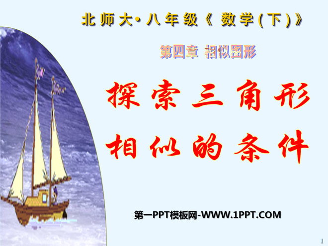 关键词:相似图形教学课件,探索三角形相似的条件教学课件,北师大版八年级下册数学PPT课件,八年级数学幻灯片课件下载,相似图形PPT课件下载,探索三角形相似的条件PPT课件下载,.ppt格式