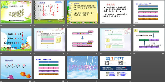 关键词:多彩的分数条教学课件,分数的初步认识教学课件,苏教大版三年级上册数学PPT课件,三年级数学幻灯片课件下载,多彩的分数条PPT课件下载,分数的初步认识PPT课件下载,.ppt格式