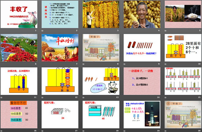 关键词:丰收了教学课件,青岛版一年级下册数学PPT课件下载,一年级数学幻灯片课件下载,丰收了PPT课件下载,.PPT格式;
